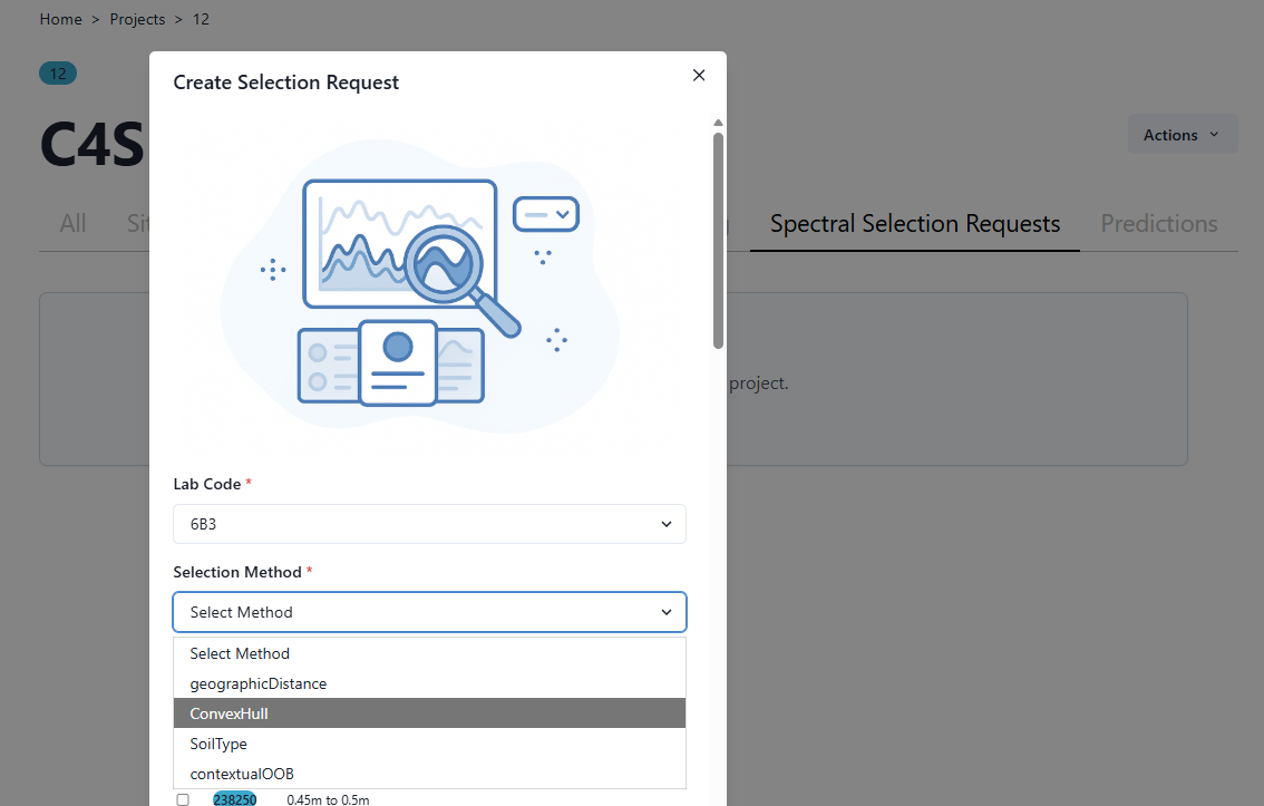 This allows users to utilize existing national spectra from similar soils and SOC content to make the best possible soil property predictions applicable to the user’s local soils. Please navigate to the C4S Science pages to find out more about the Selection Methods available here.