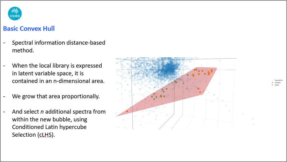 a. Latent Variable Convex Hull Approach (Islam et al., 2005) – identifies samples that define the convex hull in a latent variable space, ensuring that selected spectra capture the full range of spectral diversity (Figure 1).